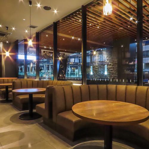 【広々としたテーブル席で快適にお過ごしいただけます】全席テーブルやソファ席の仕様。51席の広々とした店内は、グループでもゆったりと過ごせる快適なレイアウトです。